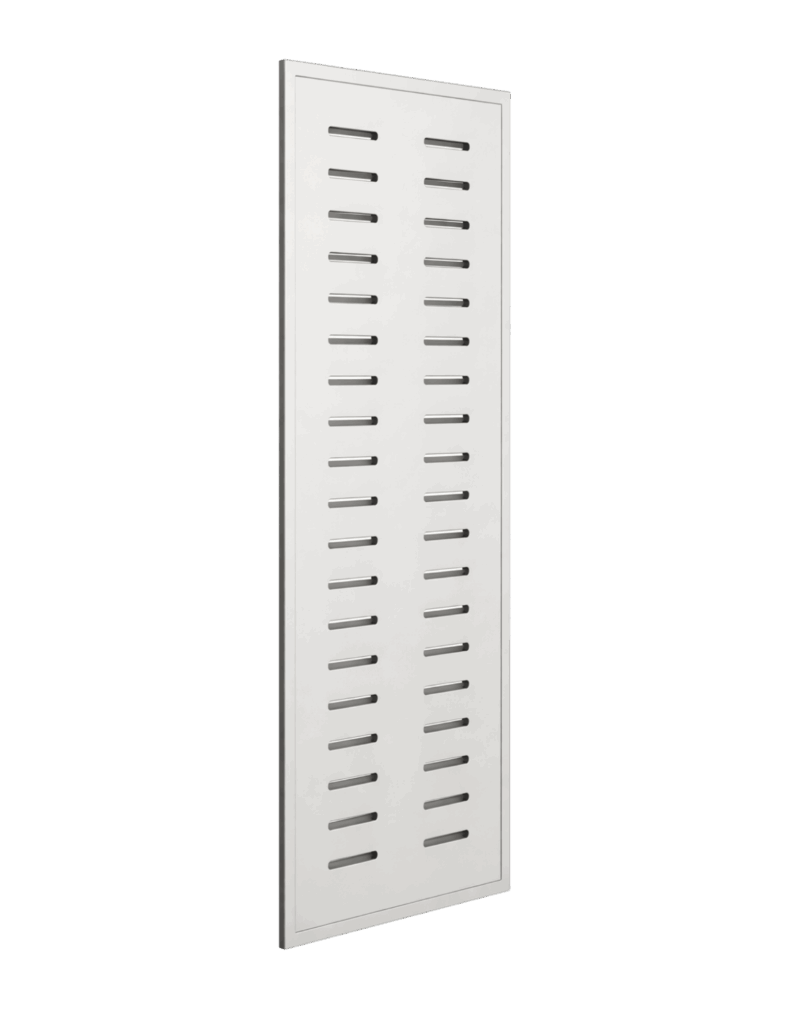 A post mounted option suited for taller enclosures and larger layouts. Vertical rib perforation balances airflow performance with a refined exterior.